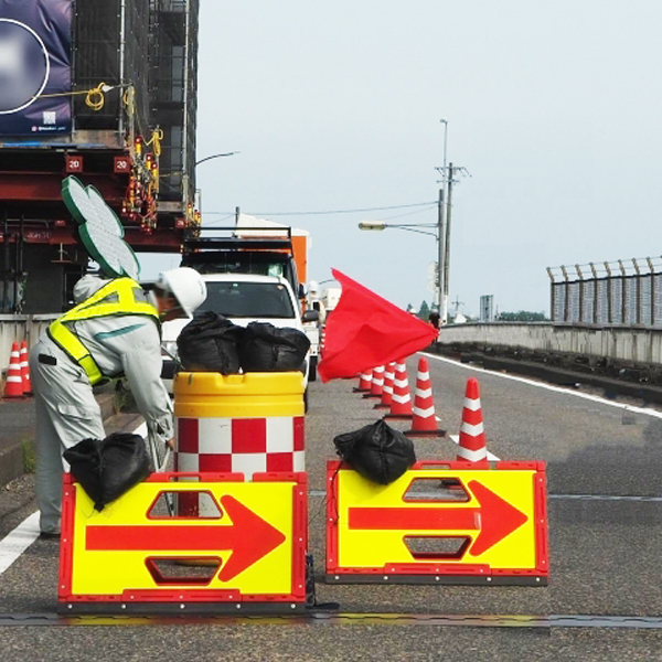 道路工事現場などにおいて、安全を確保するために車両や歩行者の誘導と安全確保を行っています。